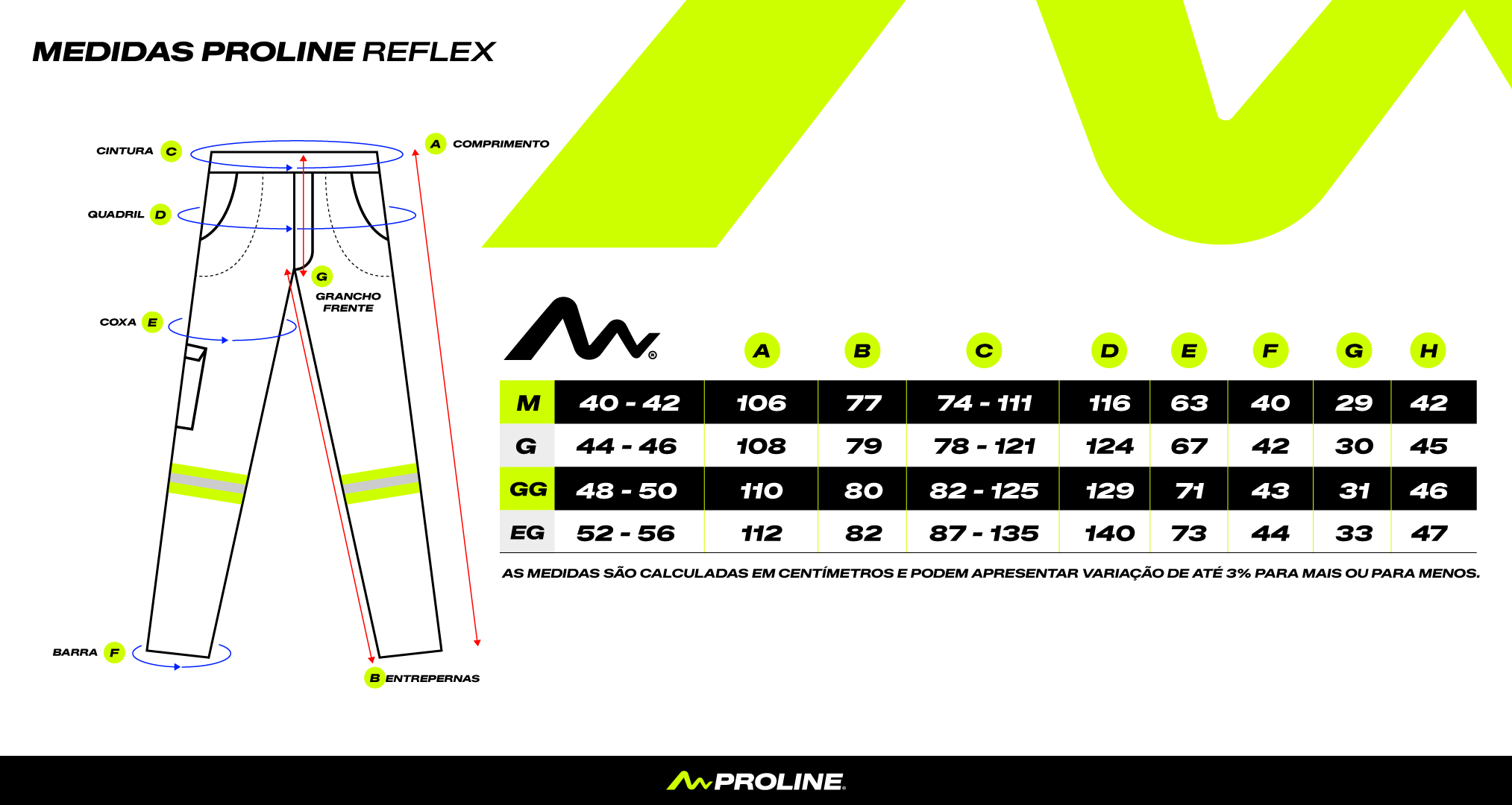 Nossa calça operacional é fabricada em brim pesado 100% algodão, com faixa refletiva costurada (não é adesiva), garantindo muito mais durabilidade, segurança e resistência no uso diário.